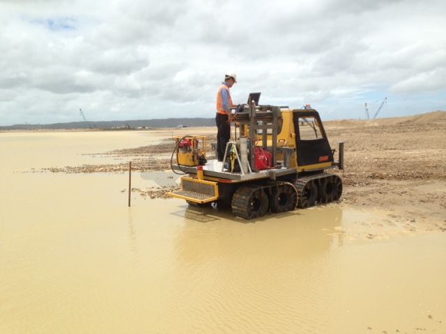 The Hydratrek is a fully amphibious vehicle which we have customised in-house to enable CPT testing. It has twin counter rotating props for river travel – this is a highly adaptable and productive machine.